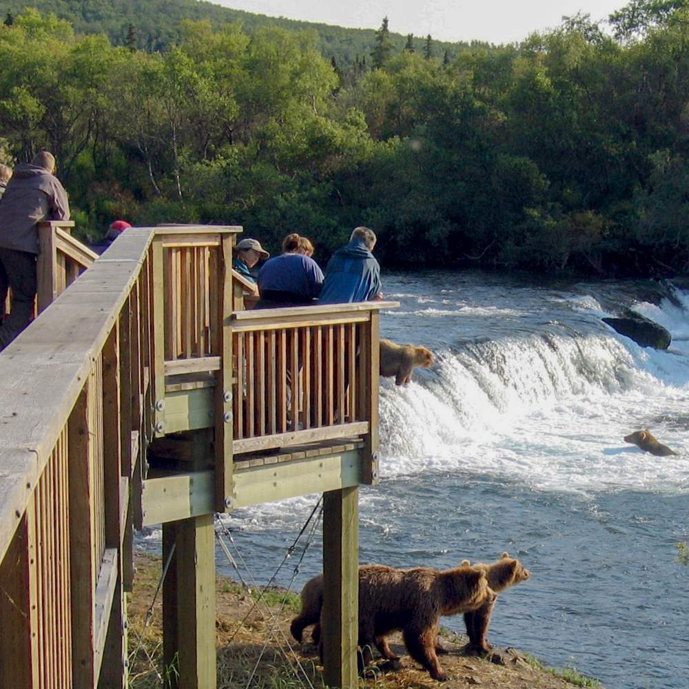 Take a short walk from the lodge to the legendary Brooks Falls and meet your fuzzy, four-legged neighbors! Fifty or so bears live along this stretch of river during peak salmon season and they aren’t shy about showing themselves off to our guests. Have no fear, the National Park Service instructs all visitors on bear safety upon arrival.