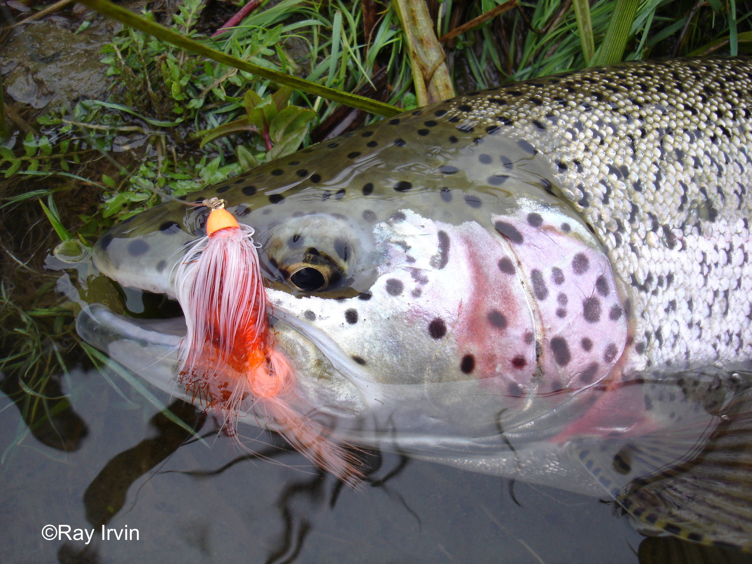 Conventional anglers should pack their favorite light or medium action rods and a good quality reel spooled with at least 8 lb test line. Expect to lose tackle to snags! We recommend bringing plenty of large spoons and spinners and extra terminal tackle (including swivels). Almost any color combo will work, but we find silver and orange to be the most consistent producers.